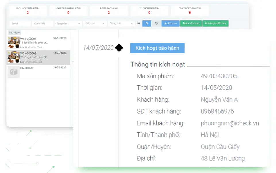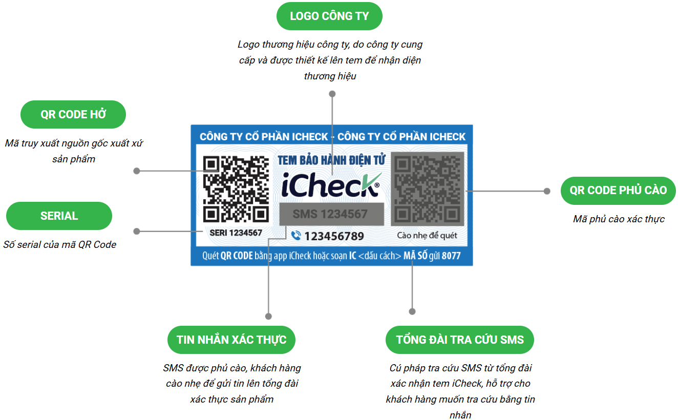 Khách hàng chỉ cần quét mã QR app iCheck Scanner hoặc gửi tin nhắn về tổng đài theo hướng dẫn in trên tem là có thể kích hoạt bảo hành chỉ sau vài giây. Sau khi quét mã, hệ thống tự động ghi nhận thông tin khách hàng và sản phẩm cho doanh nghiệp và quản lý thông tin bảo hành