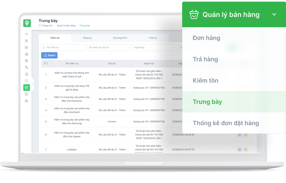 • Quản lý hoạt động trưng bày và thực hiện chấm điểm trưng bày sản phẩm.