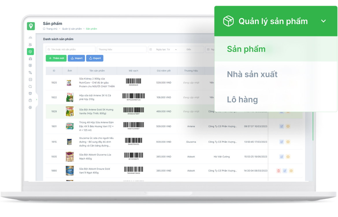 Quản lý thông tin sản phẩm, nhà phân phối, điểm bán